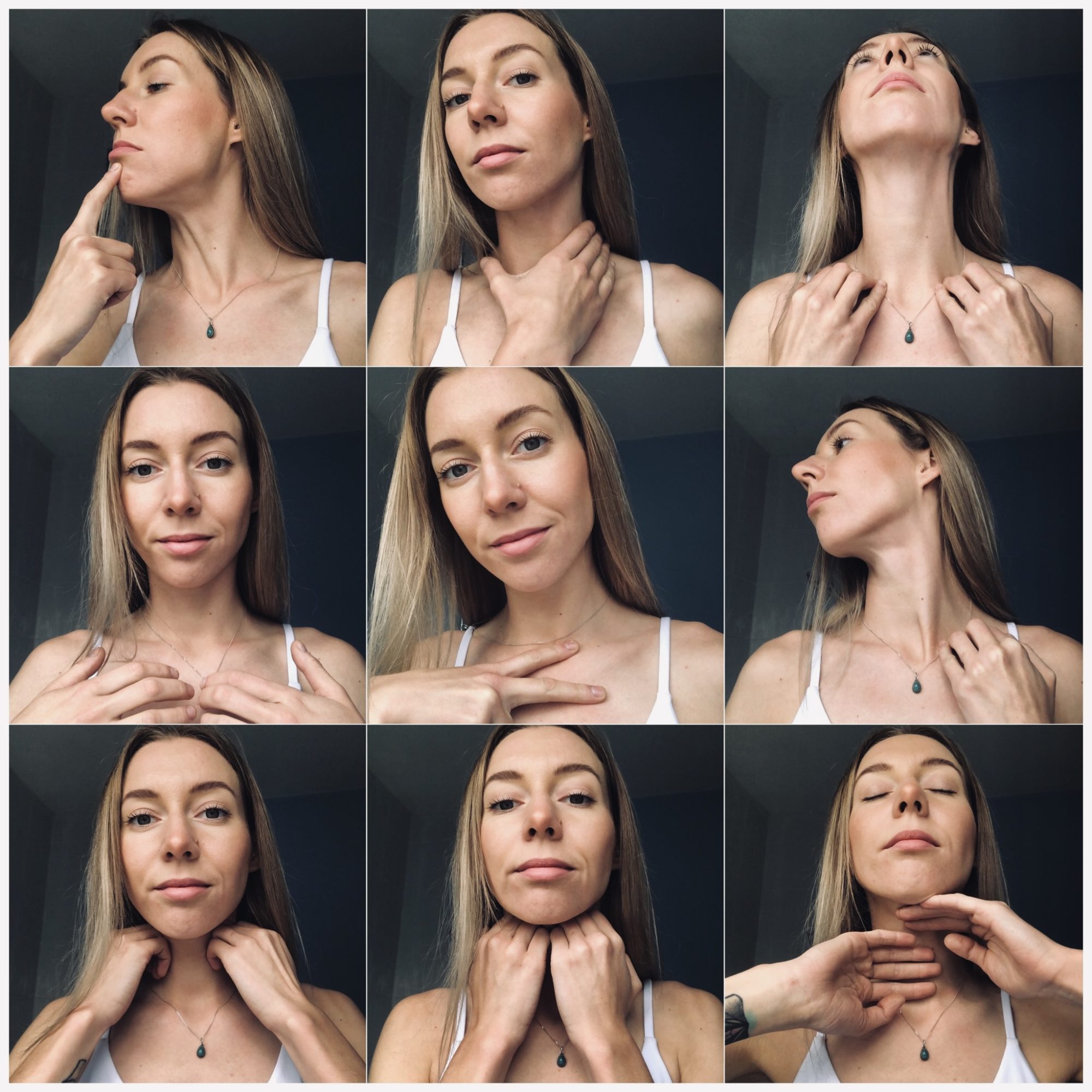 Ta prosta technika masażu uwalnia napięcia z karku tak samo jak poprawia naszą postawę, zmniejszając prawdopodobieństwo opadnięciu brody i powstawaniu zmarszczek w okolicy szyji.